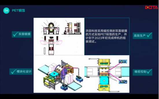 En respuesta a esto, la tecnología Kota adopta la tecnología de recubrimiento de doble cara magnetrón y completa un control preciso del proceso de producción de lámina de cobre PET a través del diseño modular. Planea completar el ensamblaje y la depuración del prototipo a principios de 2023, y se espera que produzca muestras de aluminio de cobre PET en marzo-abril el próximo año.