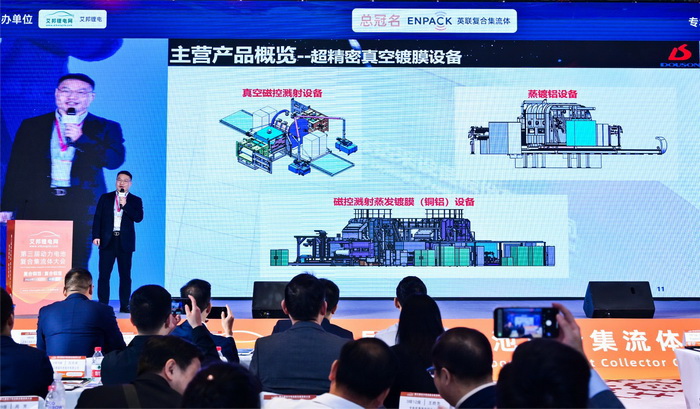 El Sr. Zhu dijo: La víspera de la industrialización de la industria de coleccionistas actuales compuestos ha llegado, y está prosperando. La tecnología KOTA se compromete con el diseño industrial y el desarrollo de equipos de lámina de cobre de alta gama y equipos de recubrimiento de vacío de ultra precisión, centrándose en proporcionar soluciones generales en el campo del "método seco de un solo paso", ayudando al desarrollo de la industria coleccionista de corriente compuesta y acelerando la mejora de la permeabilidad coleccionista actual compuesta. En la reunión, el Sr. Zhu se centró en introducir la solución de "método seco de un solo paso" proporcionada por la tecnología Kota en el campo del equipo compuesto de cobre y aluminio de aluminio: máquina de aluminio de aluminio de aluminio de magnetrón de aluminio de aspirador, equipos de aluminio de aluminio de aluminio vacío. Kota Technology ha formado su propia matriz de productos única en el campo de los equipos de aluminio compuesto de cobre y aluminio, que puede satisfacer las necesidades de personalización personalizadas de diferentes clientes y proporcionar a los clientes un conjunto completo de soluciones para toda la fábrica. En la reunión, el lanzamiento del equipo de método seco de un solo paso recibió una atención generalizada y elogios de expertos en la industria e invitados que asistieron a la reunión.