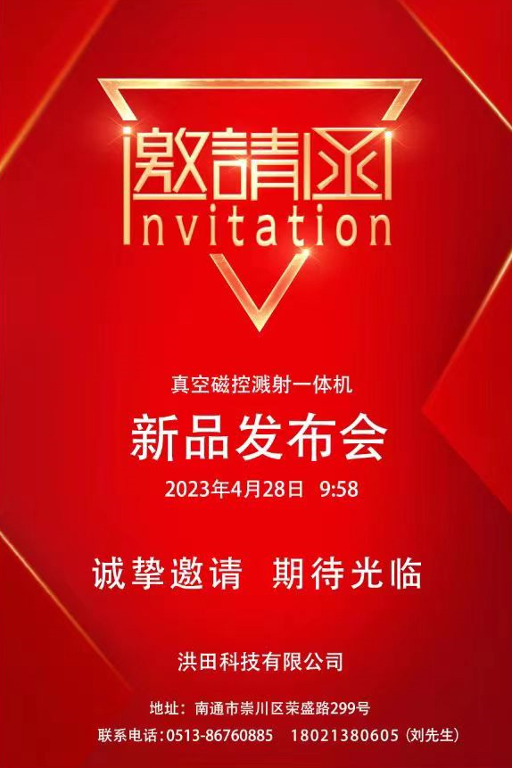 KOTA Technology plans to hold a new product launch conference for vacuum magnetron sputtering integrated machine at the factory of KOTA Technology (Jiangsu) Co., Ltd. (No. 299, Rongsheng Road, Chongchuan District, Nantong City) at 9:58 on Friday, April 28, 2023. We sincerely invite relevant of local governments, company customers, as well as friends from the media and various cooperative institutions to attend the Conferencia.
